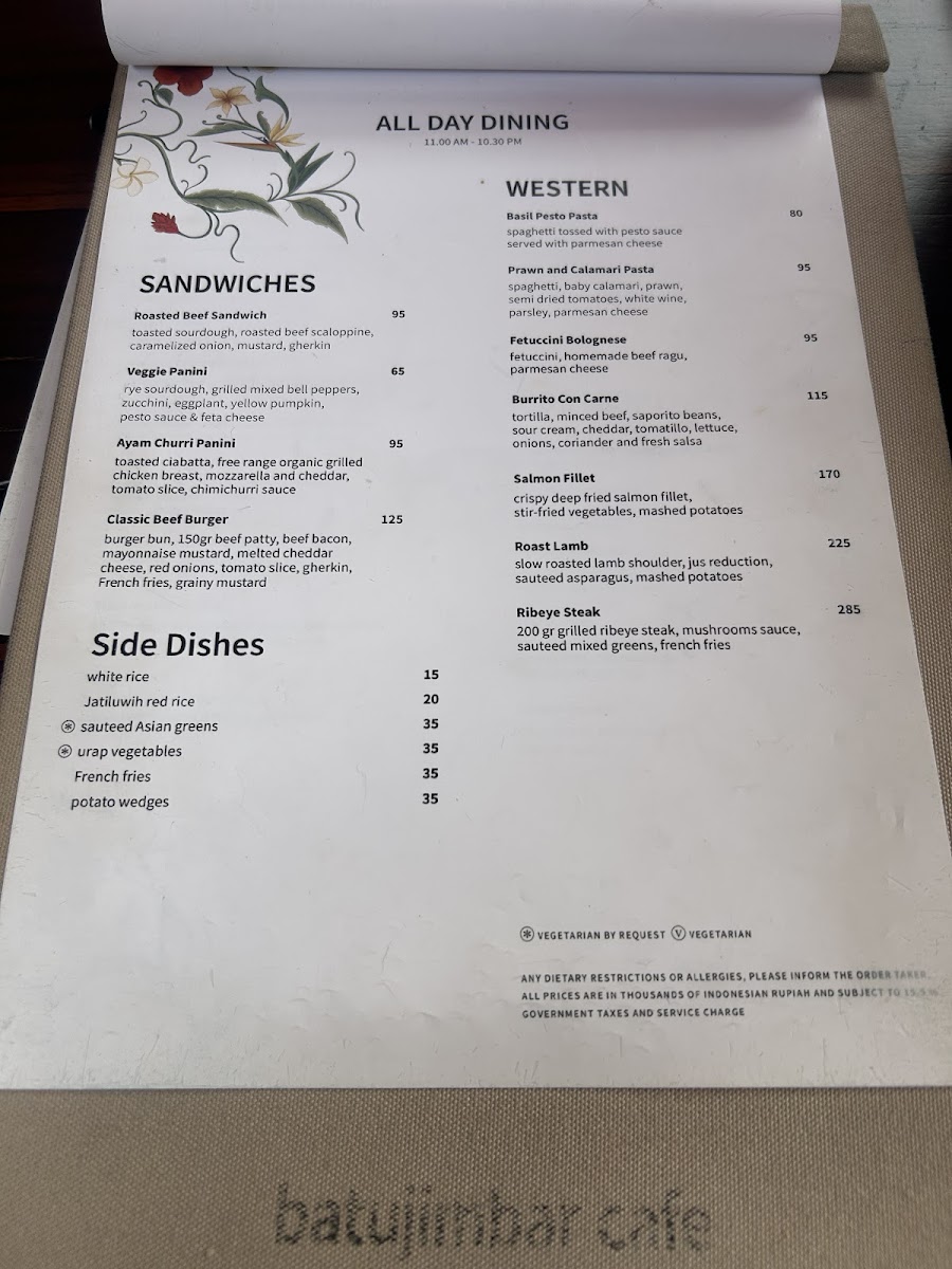 Located in the heart of Sanur, Batujimbar Cafe stands out for its exceptional culinary offerings and welcoming ambiance. This popular spot boasts a diverse menu mainly featuring traditional Indonesian dishes, highlighted by their renowned Rendang, Lamb Satays, and the delightful Nasi Campur. Customers rave about the consistency and quality, ensuring a satisfying experience with every visit.